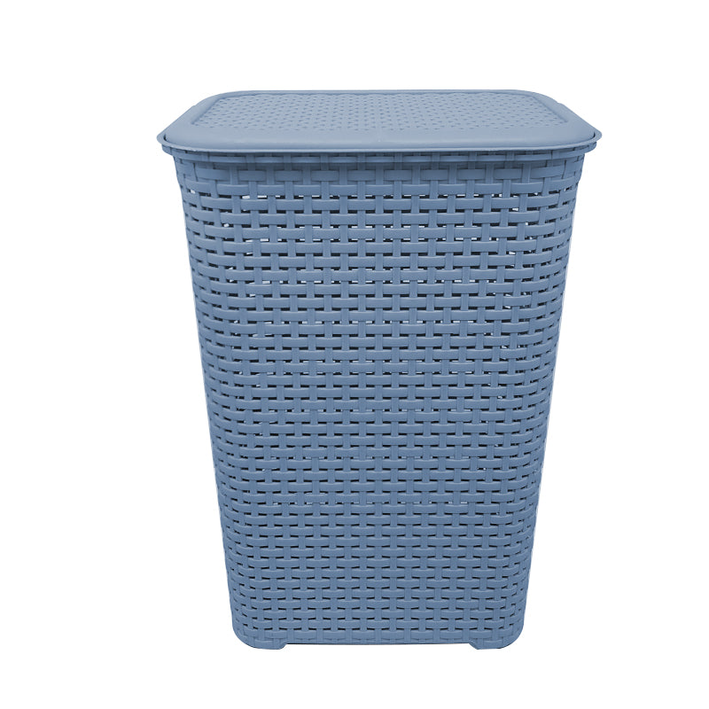 CESTO RATTAN C/TAPA L45.5X33 AZUL TURQUIA CESR0079